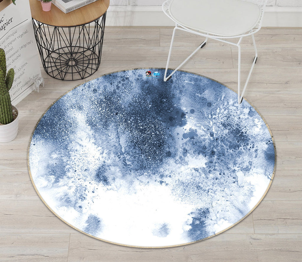 3D Light Blue Ink 142 Round Non Slip Rug Mat