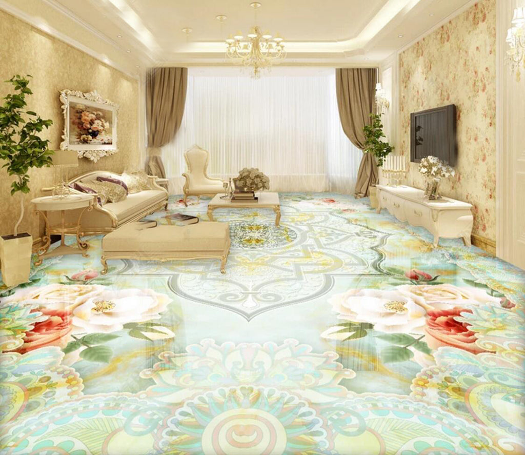 3D Light Blue Petals 097 Floor Mural Self-Adhesive Sticker Bathroom Non-slip Waterproof Flooring Murals