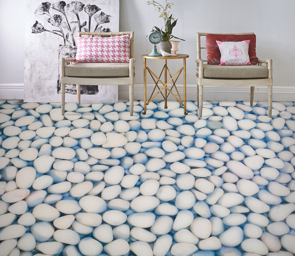 3D Little White Pebbles 091 Floor Mural Wallpaper Murals Rug & Mat Print Epoxy waterproof bath floor