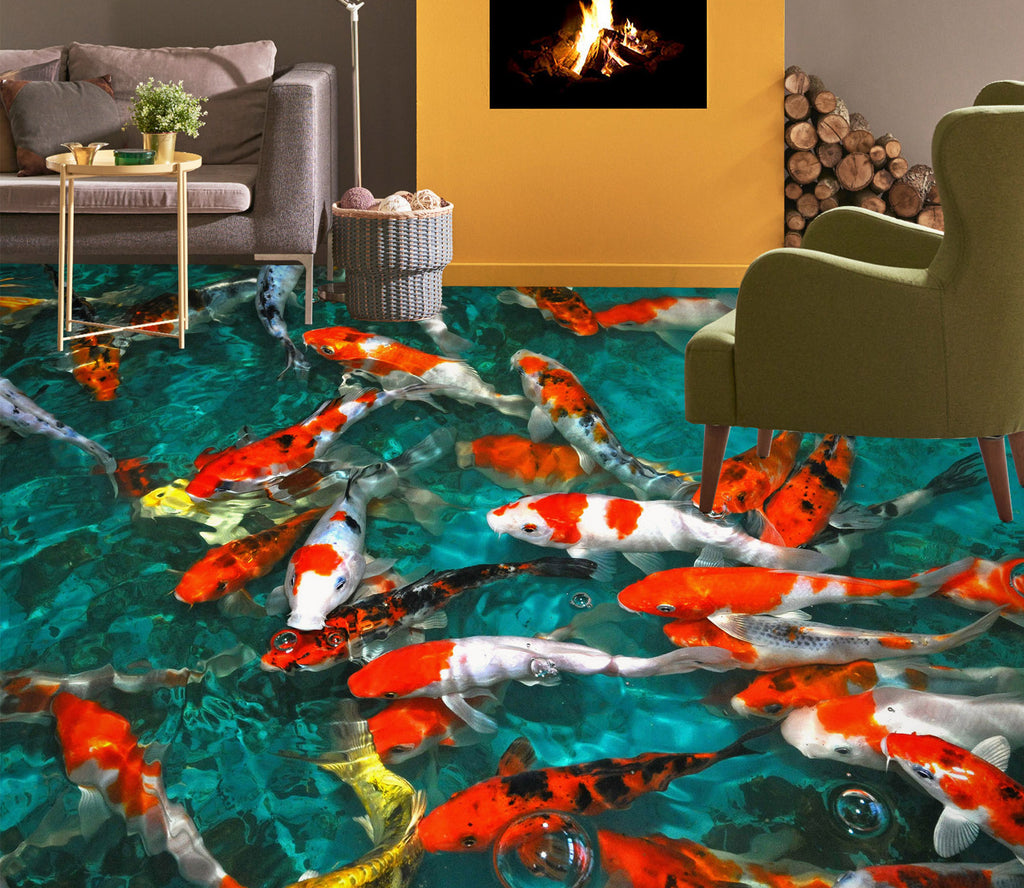 3D Lucky Koi 007 Floor Mural Wallpaper Murals Rug & Mat Print Epoxy waterproof bath floor