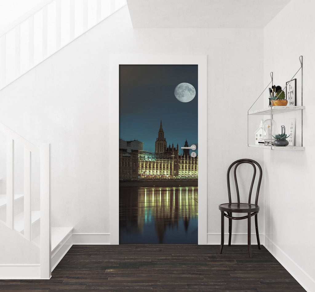3D Moon Lake Building Shadow 10692 Assaf Frank Door Mural Sinsin