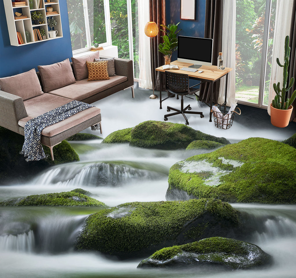 3D Moss And Running Water 523 Floor Mural Wallpaper Murals Rug & Mat Print Epoxy waterproof bath floor