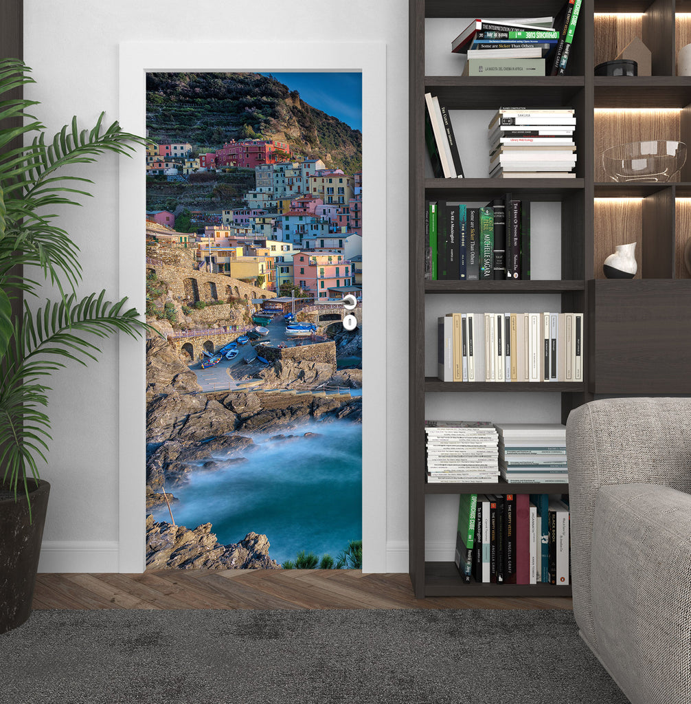 3D Mountains Colorful Houses Seaside 119188 Marco Carmassi Door Mural Sinsin
