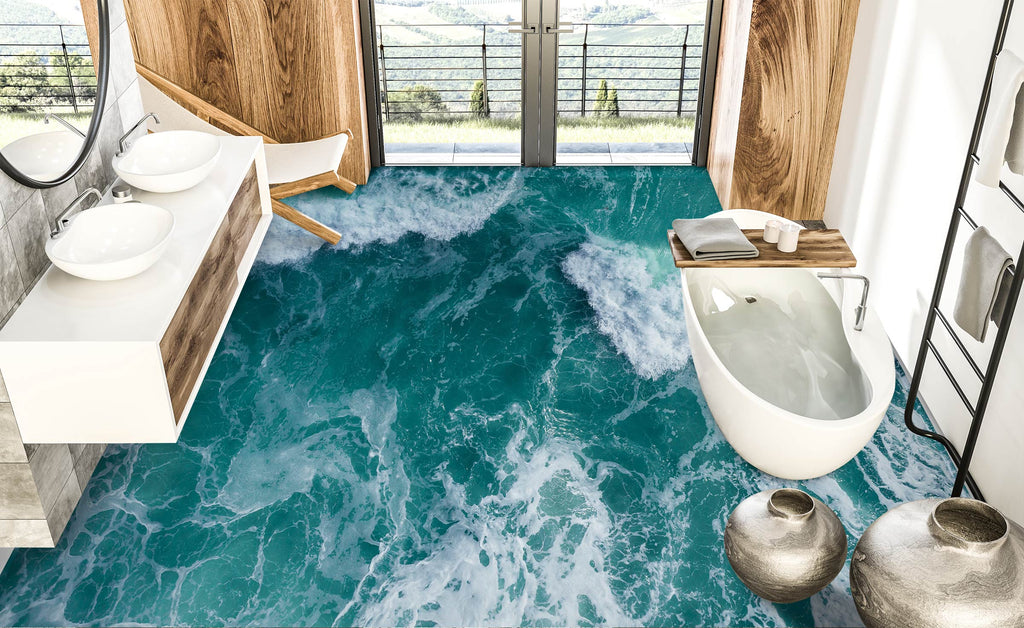 3D Natural Waves 413 Floor Mural Wallpaper Murals Rug & Mat Print Epoxy waterproof bath floor