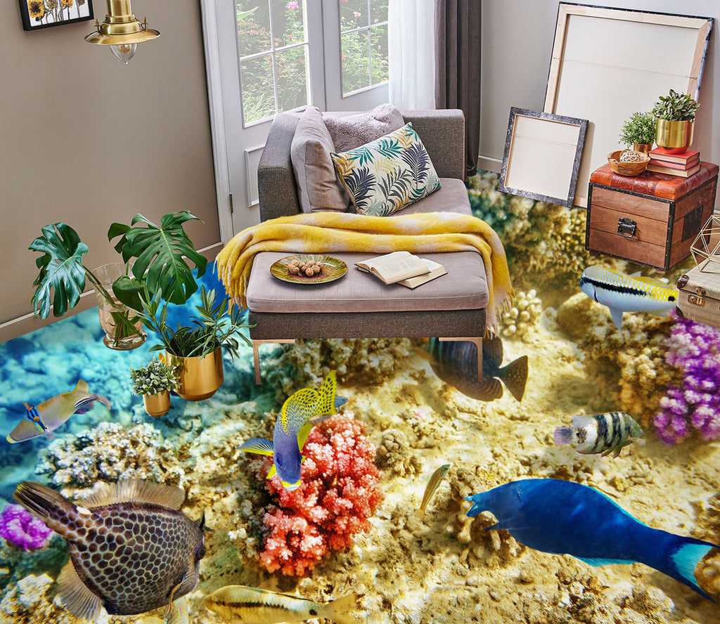 3D Ocean Deep Blue Fish 706 Floor Mural Romy