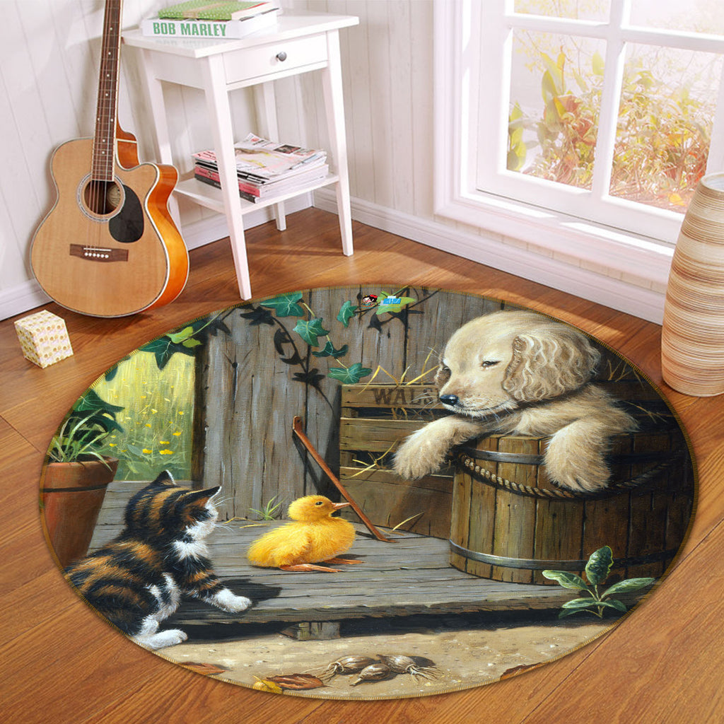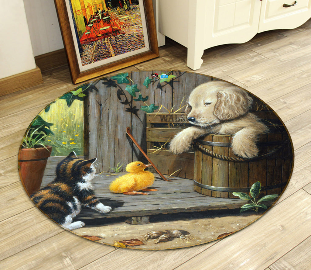 3D Pet Party 454 Kevin Walsh Rug Round Non Slip Rug Mat Sinsin