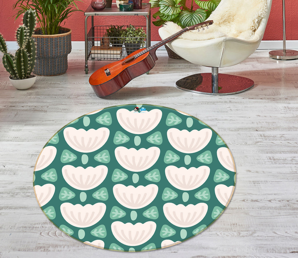 3D Pink Flowers Leaves Pattern 10516 Kashmira Jayaprakash Rug Round Non Slip Rug Mat Sinsin