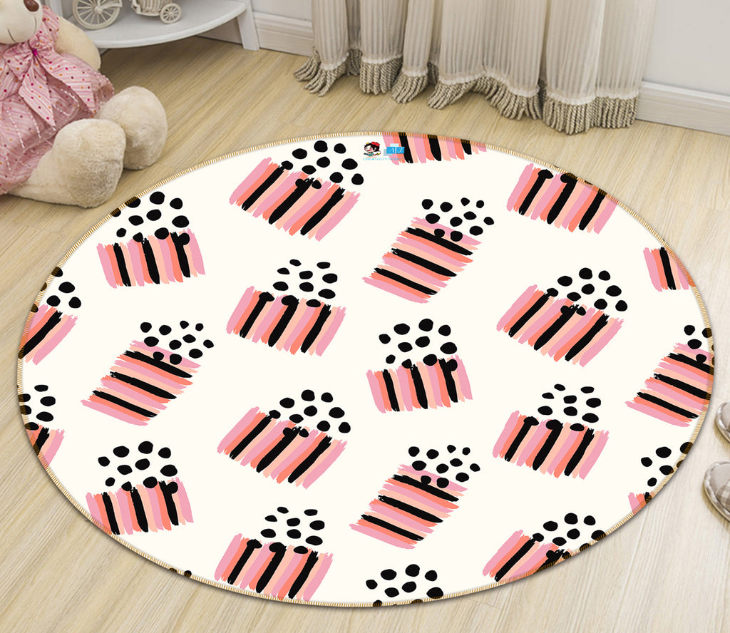 3D Pink Stripes Black Dots Pattern 10597 Kashmira Jayaprakash Rug Round Non Slip Rug Mat Sinsin