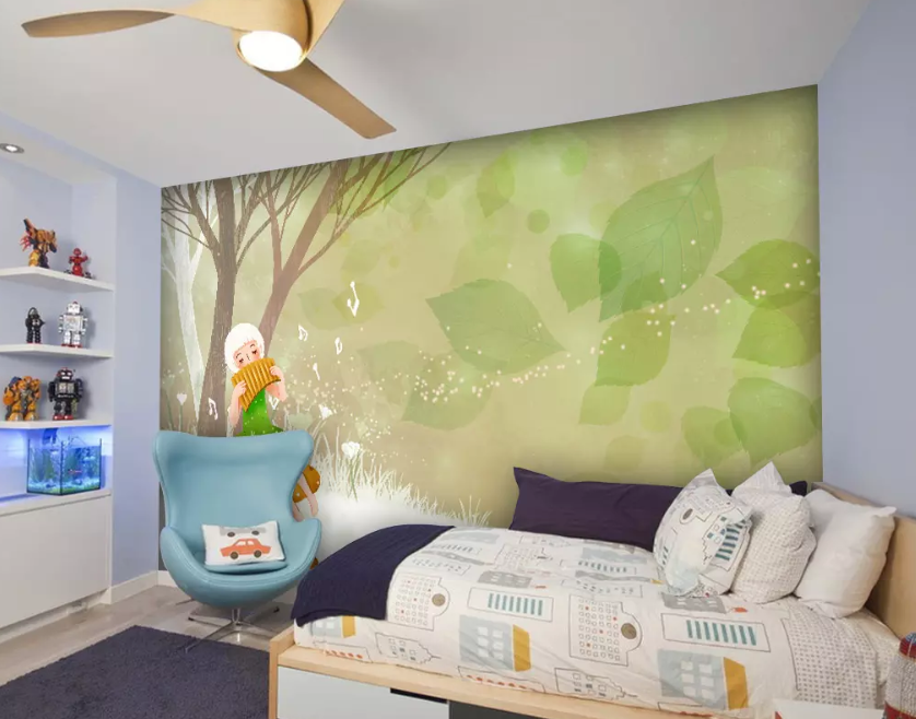 Align panel 2 to panel 1. Simply match the pattern of the mural (with 2cm overlap).No need to cut. Repeat for additional panels. Trim any ceiling and baseboard overage, lt's better to wipe the mural's surface with a wet cloth after the installation. Because it will make more sticky.