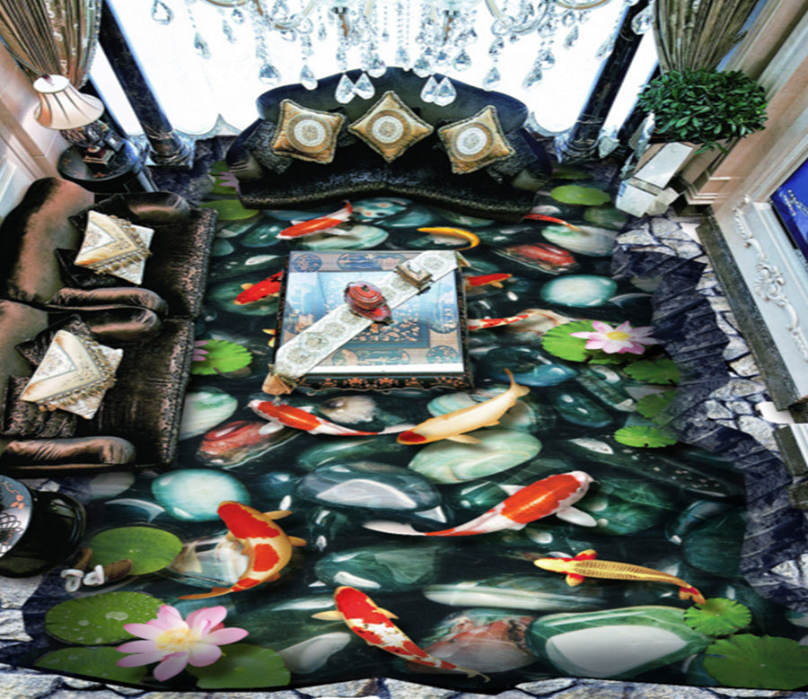 3D Pond Koi 348 Floor Mural Wallpaper Murals Rug & Mat Print Epoxy waterproof bath floor