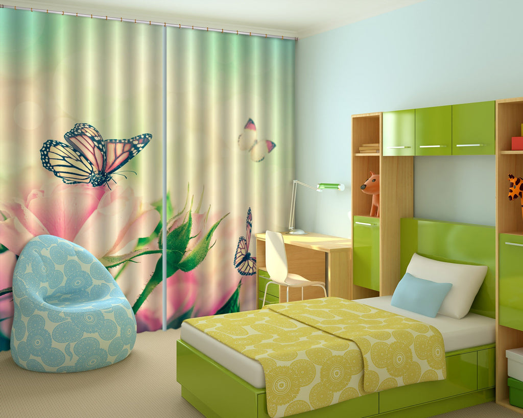 3D Pretty Flowers Butterflies 611 Curtains Drapes