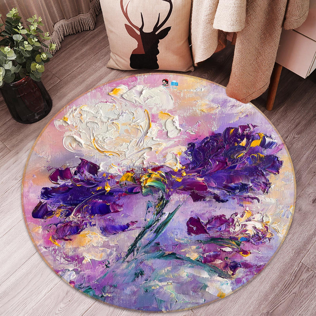 3D Purple Flower 806 Skromova Marina Rug Round Non Slip Rug Mat Amy