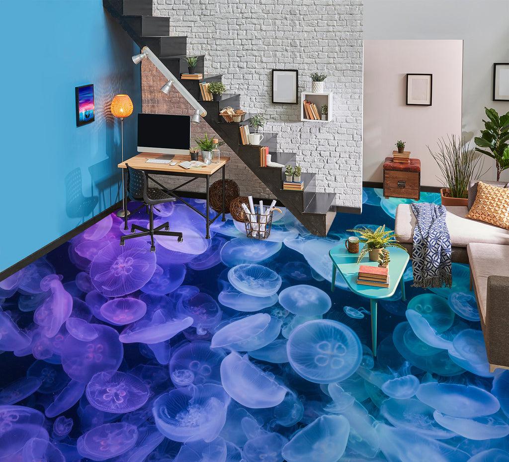 3D Purple Jellyfish 665 Floor Mural Wallpaper Murals Rug & Mat Print Epoxy waterproof bath floor