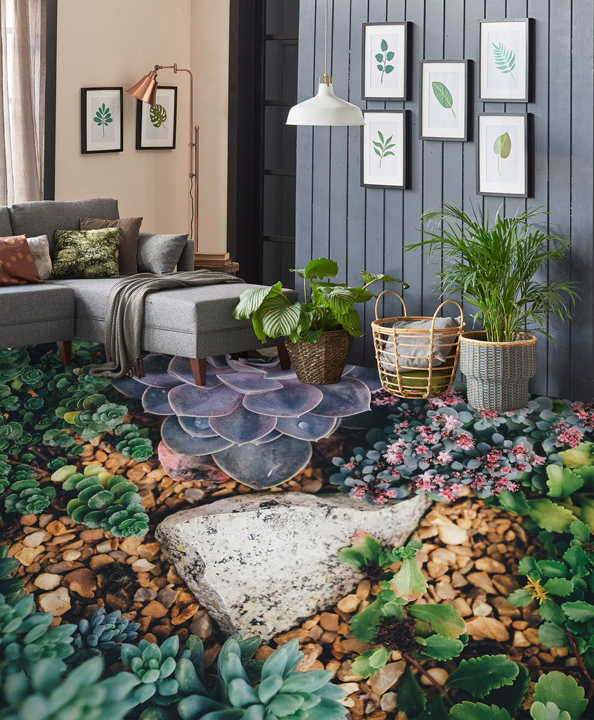 3D Purple Succulent Lotus 1488 Floor Mural Romy