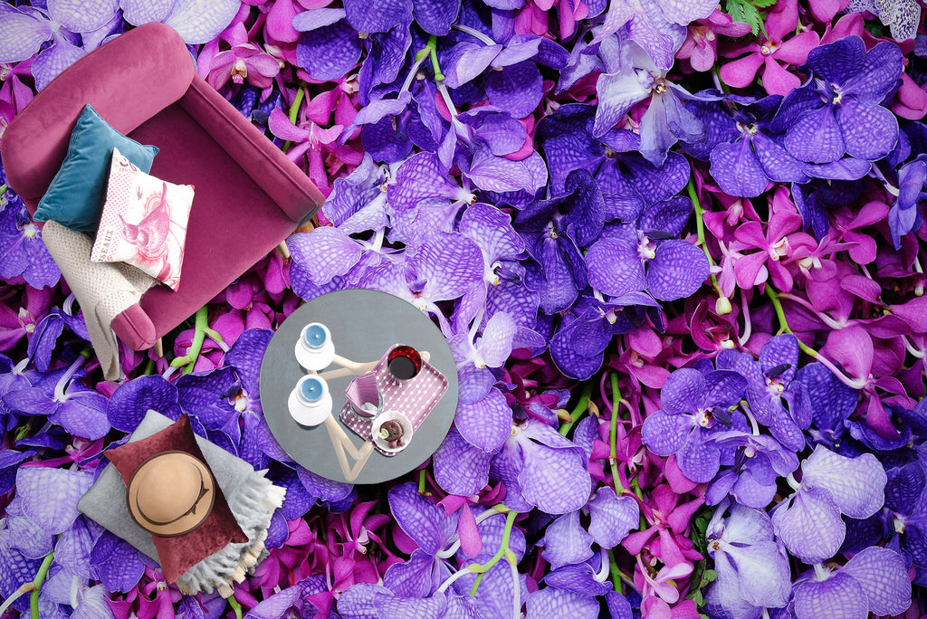 3D Purple Vanda 308 Floor Mural Wallpaper Murals Rug & Mat Print Epoxy waterproof bath floor