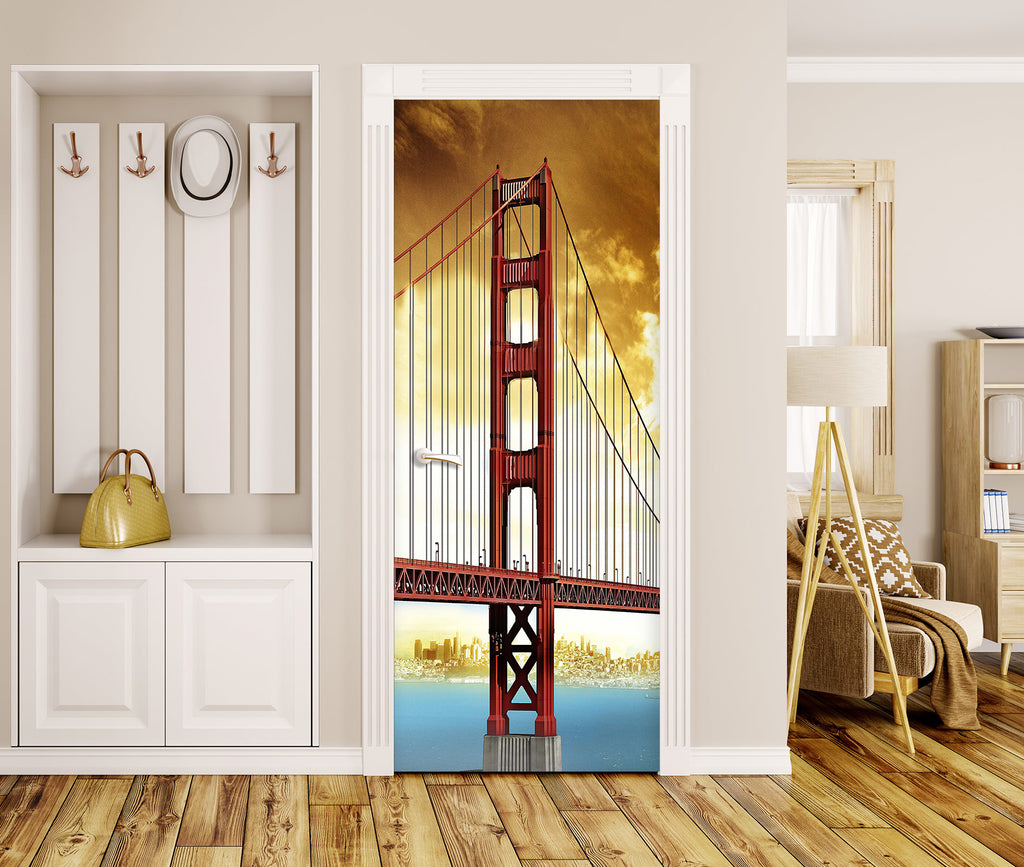 3D Red Bridge 026 Door Mural Zoe