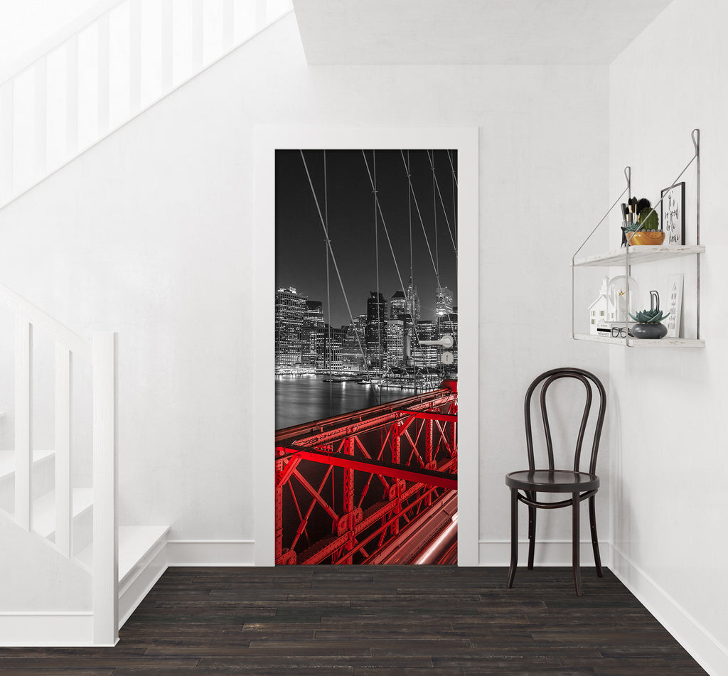 3D Red Light Bridge Grey Building 10708 Assaf Frank Door Mural Sinsin