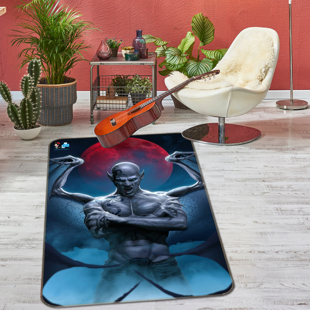 3D Red Moon Dragon Man 4124 Tom Wood Rug Non Slip Rug Mat