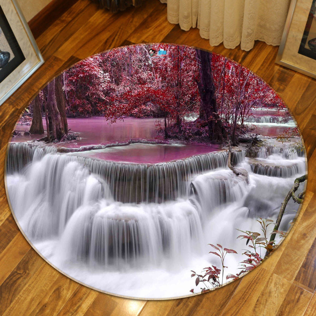 3D Red River Waterfall 26 Round Non Slip Rug Mat