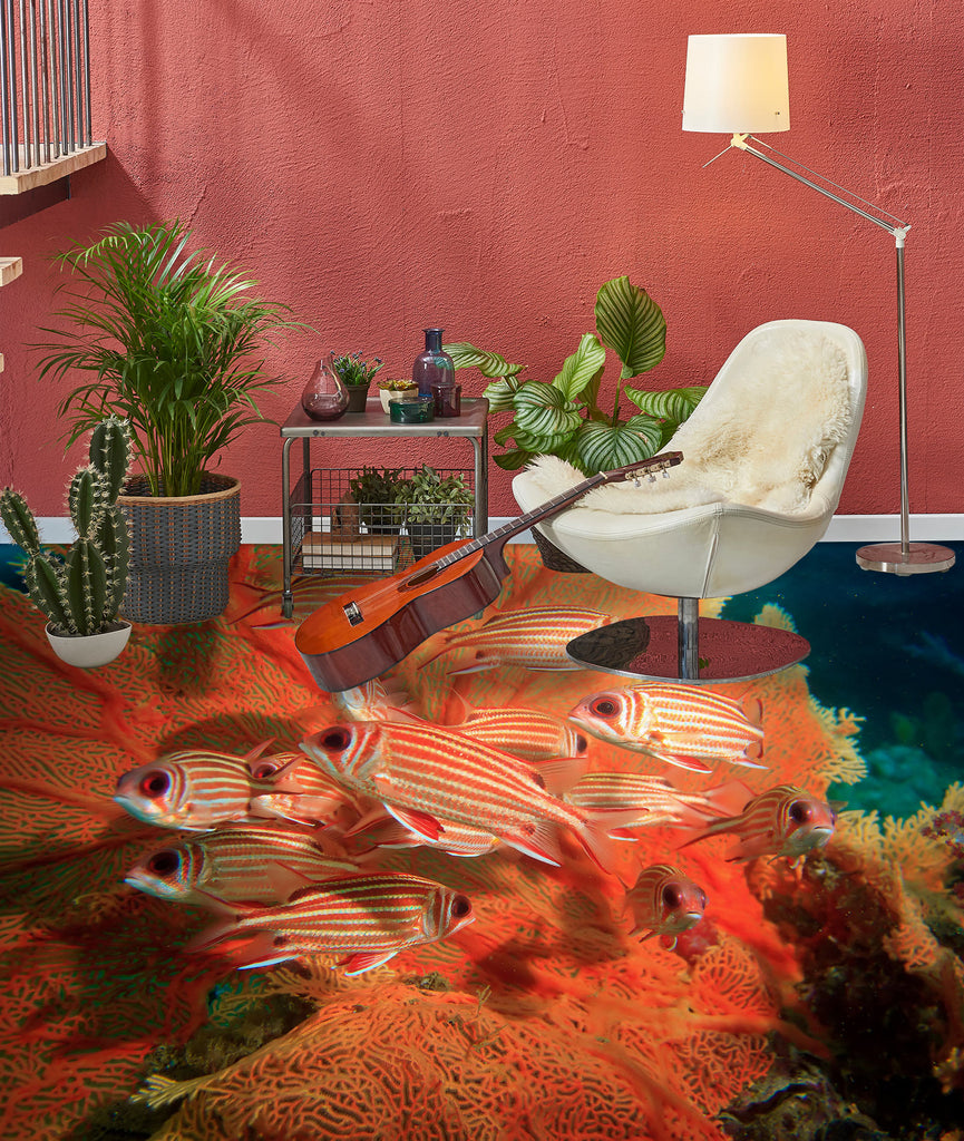 3D Red Striped Fish 610 Floor Mural Wallpaper Murals Rug & Mat Print Epoxy waterproof bath floor