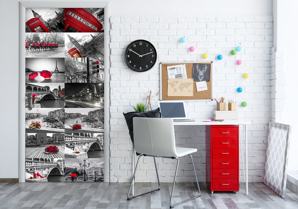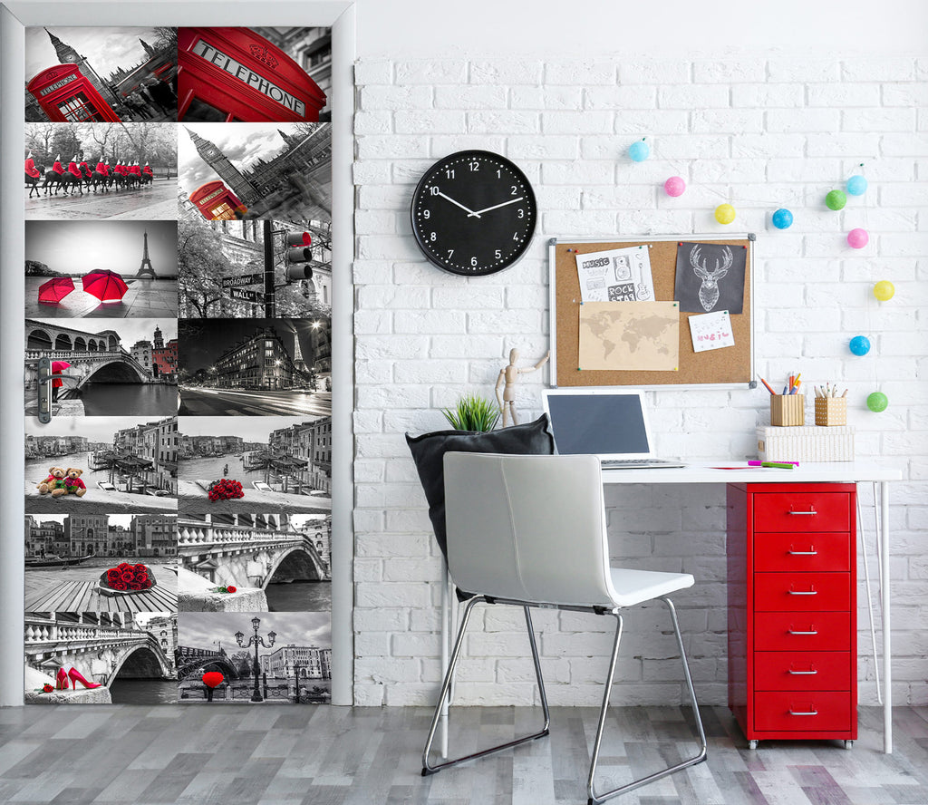 3D Red Umbrella Phone Booth 106210 Assaf Frank Door Mural