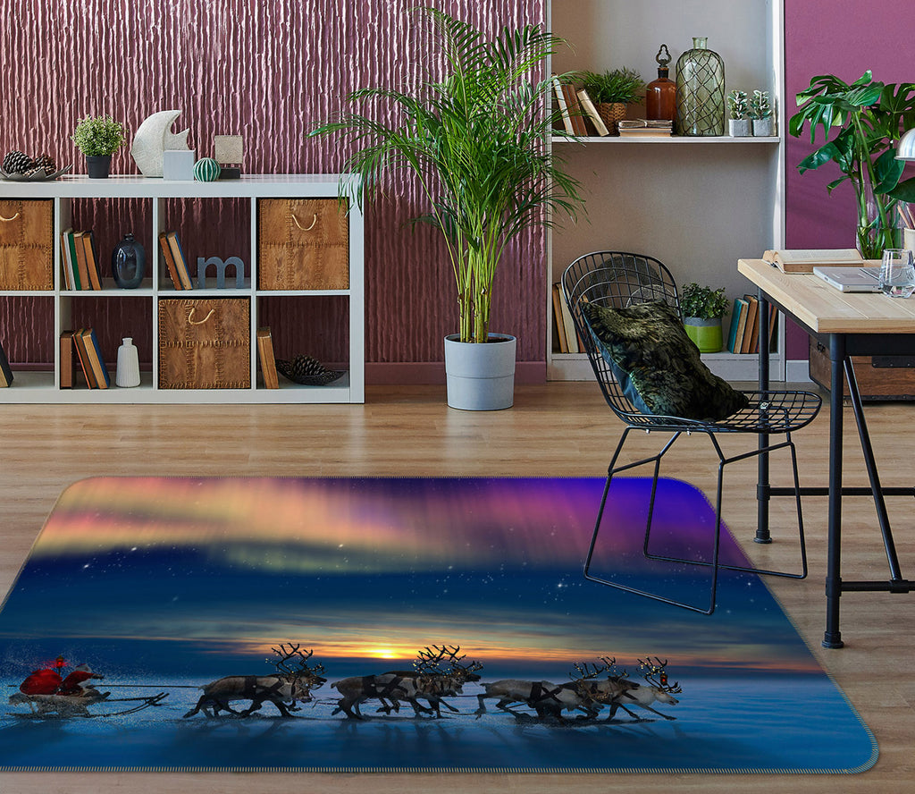 3D Reindeer Sleigh 075 Animal Non Slip Rug Mat Zoe