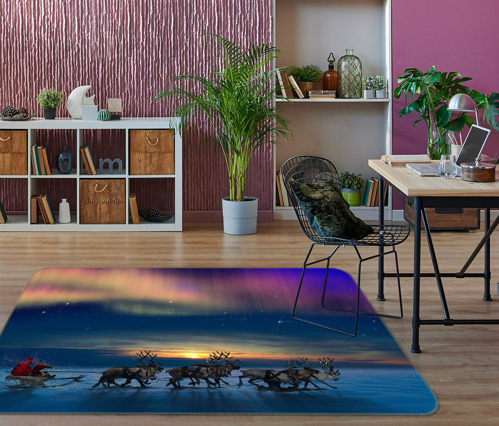 3D Reindeer Sleigh 075 Animal Non Slip Rug Mat
