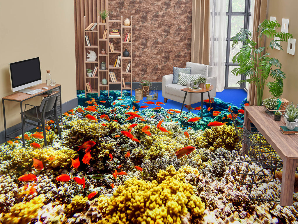 3D Rich Orange Fish 781 Floor Mural Wallpaper Murals Rug & Mat Print Epoxy waterproof bath floor