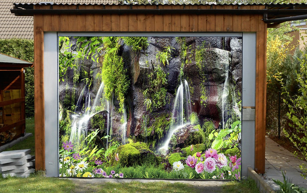 3D Rock Cliff Flowing Water 313 Garage Door Mural