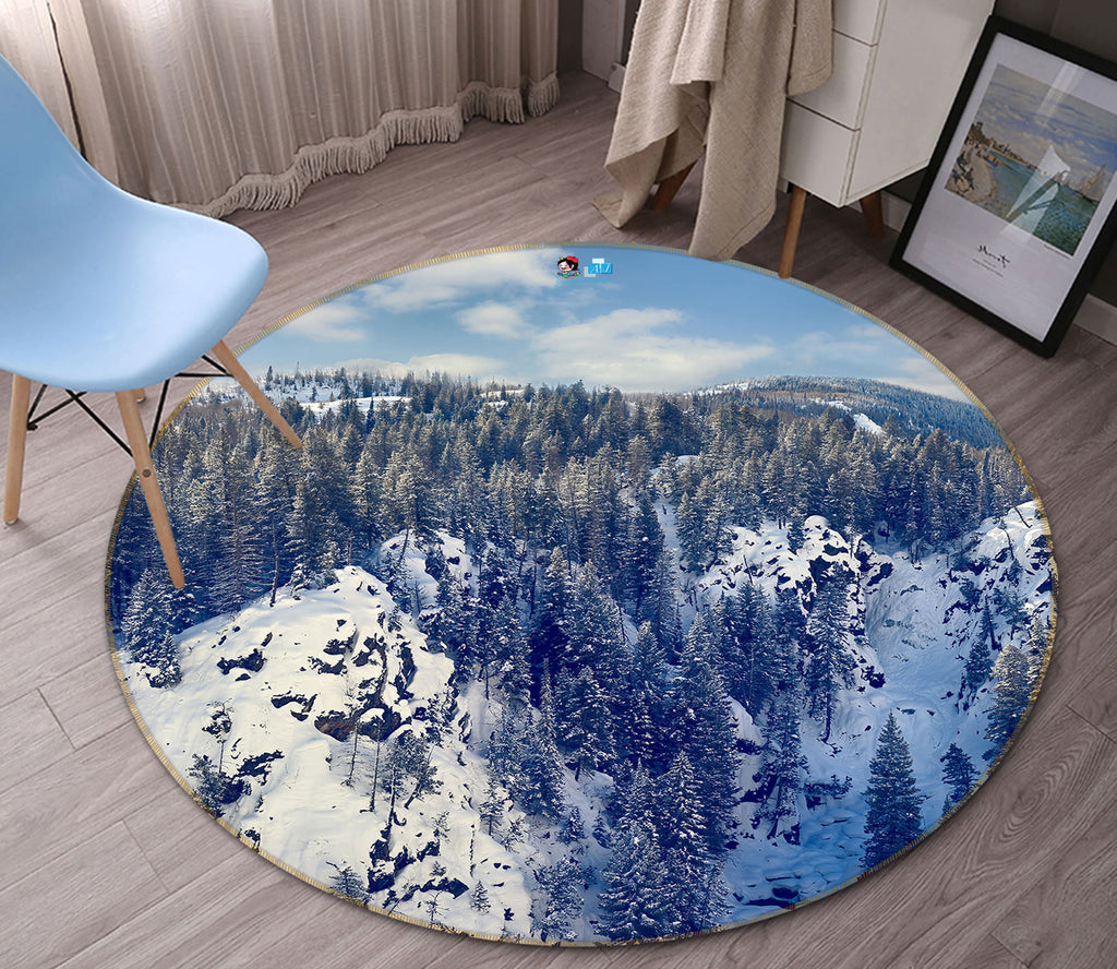 3D Snow Forest 5029 Beth Sheridan Rug Round Non Slip Rug Mat