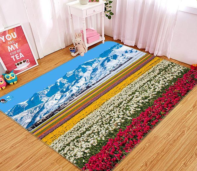 3D Snow Mountains Flowers Field 195 Non Slip Rug Mat