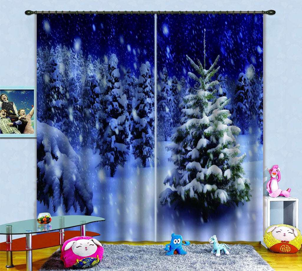 3D Snowing Forest 583 Curtains Drapes