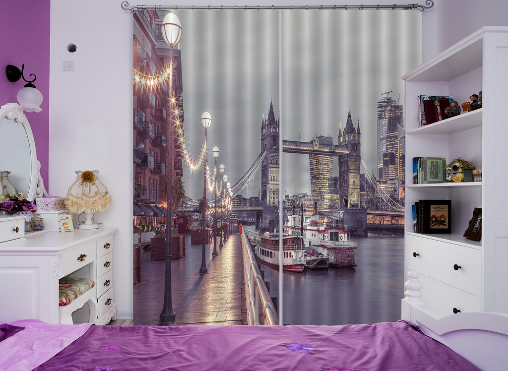 3D Street Light Boat 054 Assaf Frank Curtain Curtains Drapes