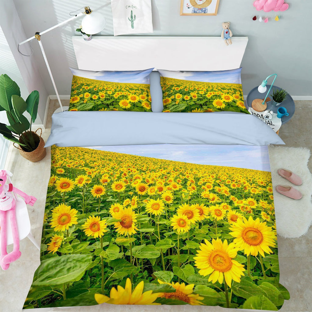 3D Sunflowers Field 248 Bed Pillowcases Quilt