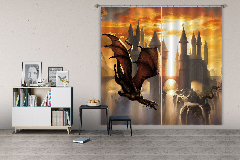 3D Sunset Castle Dragon 7203 Ciruelo Curtain Curtains Drapes