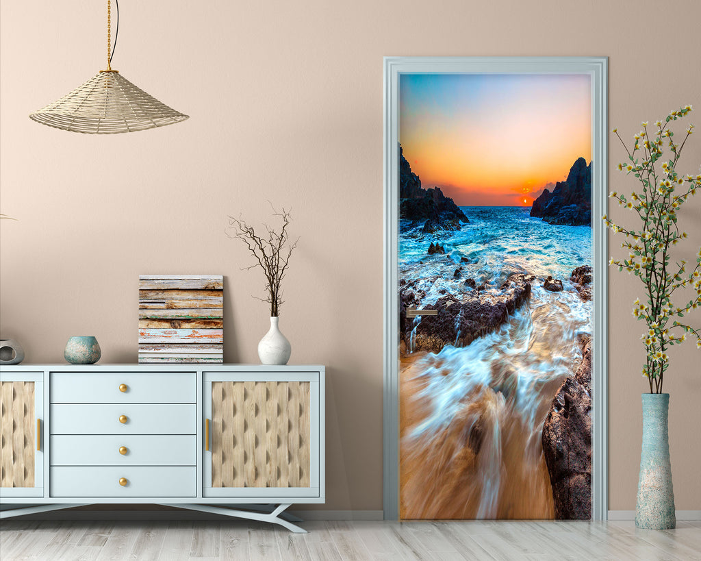 3D Sunset Stone Sea 069 Door Mural Zoe