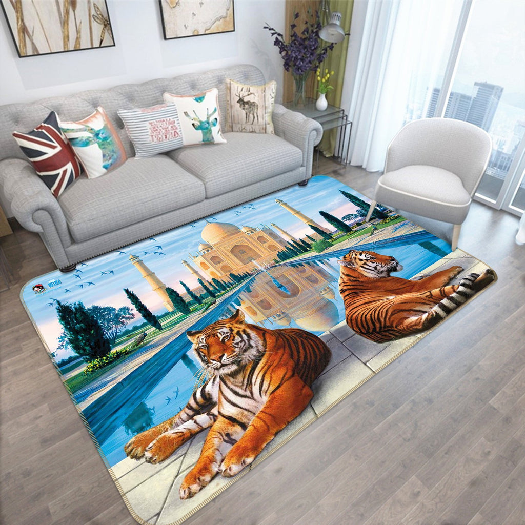 3D Taj Mahal Tigers 273 Non Slip Rug Mat