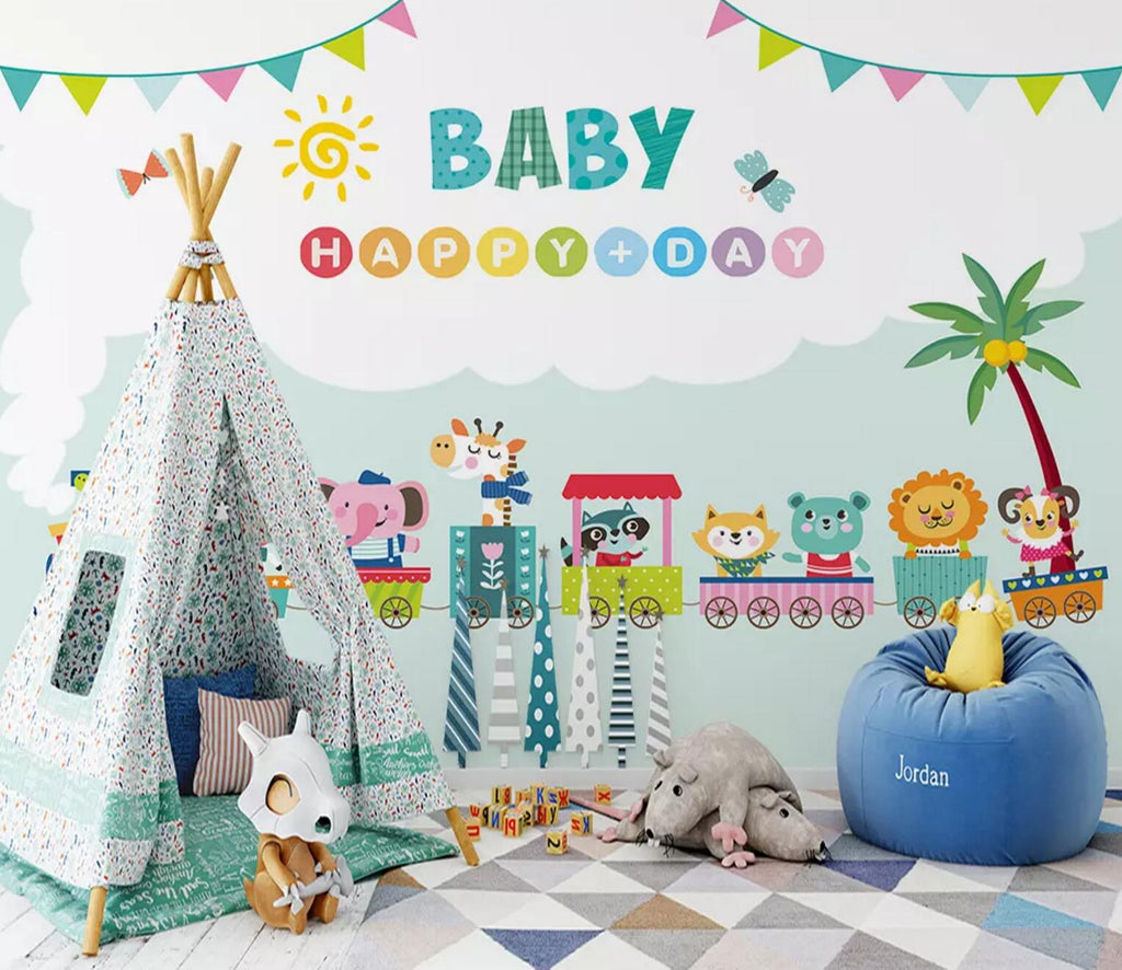 3D Train Elephant Giraffe WC710 Wall Murals Zoe