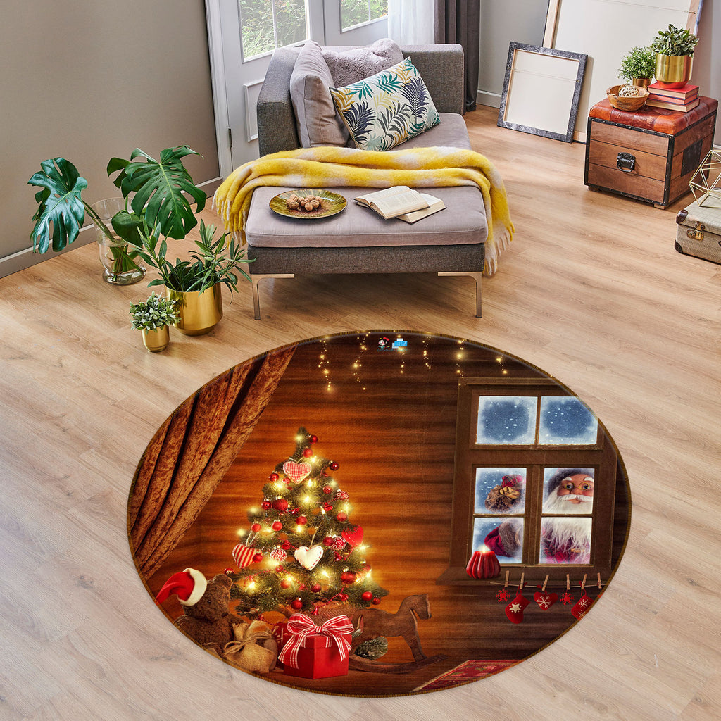3D Tree Window Santa Claus 55167 Christmas Round Non Slip Rug Mat Xmas Sinsin