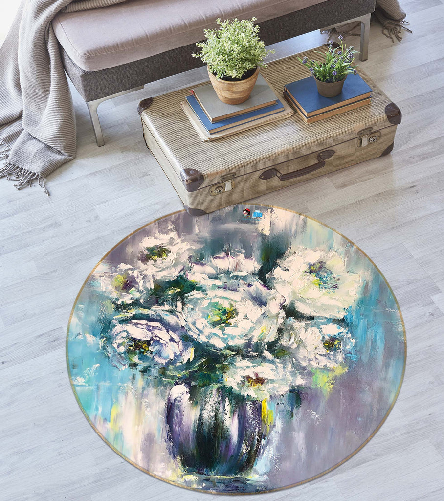3D Vase Oil Painting 793 Skromova Marina Rug Round Non Slip Rug Mat