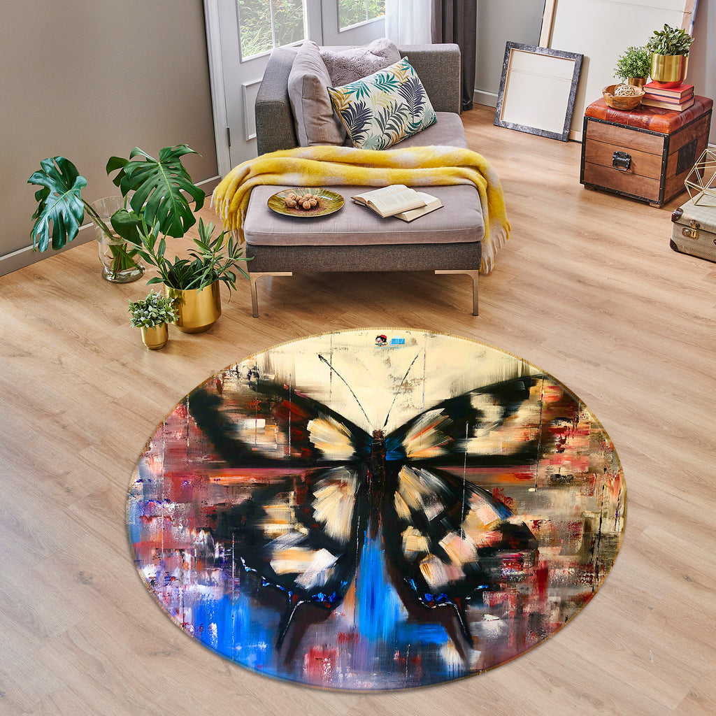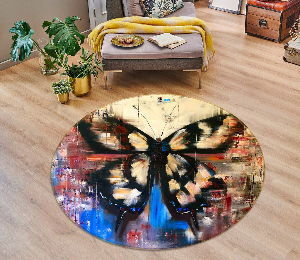 3D Vintage Painted Butterfly 891 Skromova Marina Rug Round Non Slip Rug Mat Amy