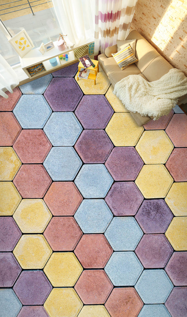 3D Warm Hexagonal Colors 803 Floor Mural Romy