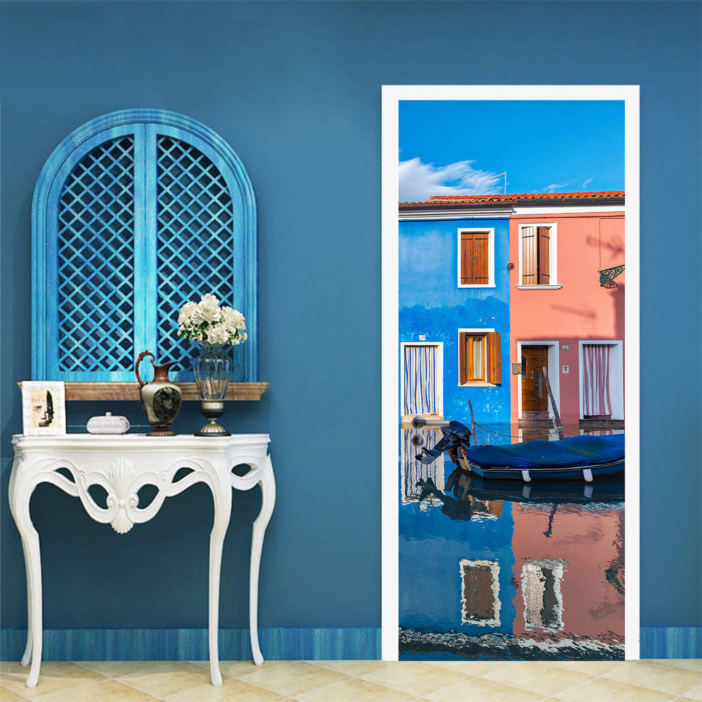3D Water Shadow Colorful Houses 12227 Marco Carmassi Door Mural Sinsin