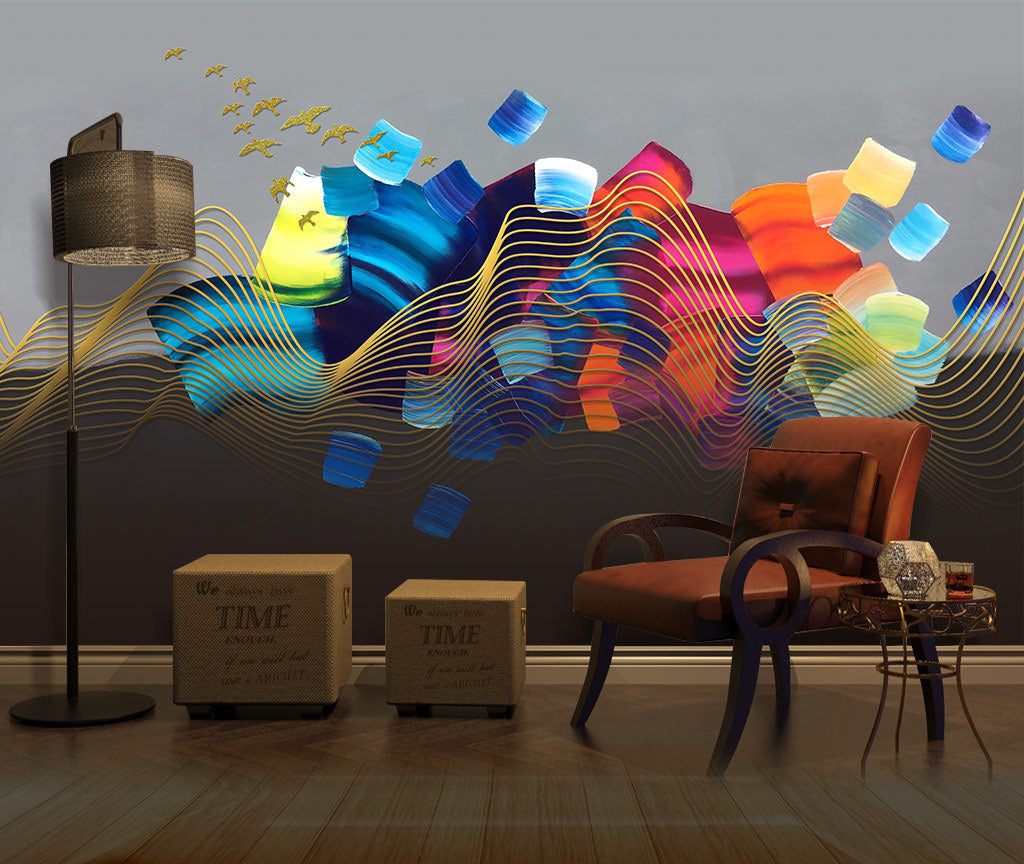 Make sure the wall surface is flat, clean and smooth. A clean and dry wall will help the adhesive from your wall mural to keep its stickiness. Put all panels on the ground, check the order. Measure and write down the dimensions of each panel. Mark vertical guidelines according to the panel's dimensions. Leave 2-3cm overlap between panels.