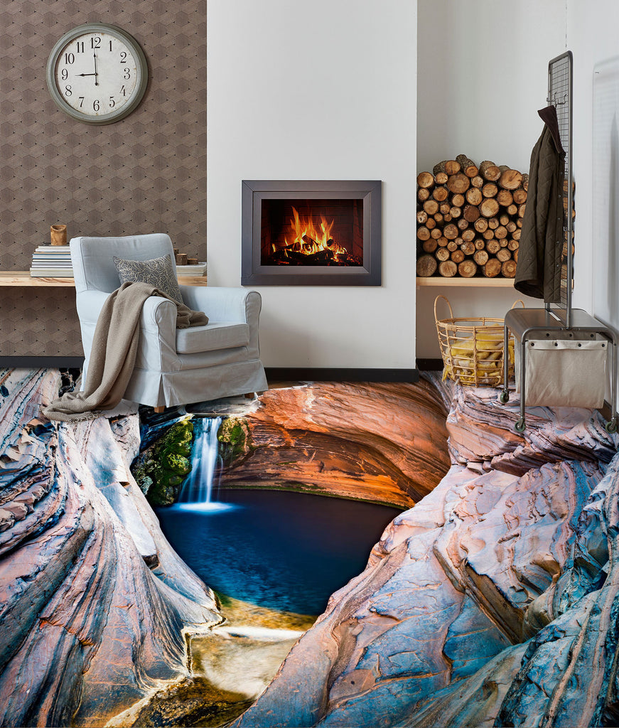 3D Waterfall In The Canyon 1032 Floor Mural Romy