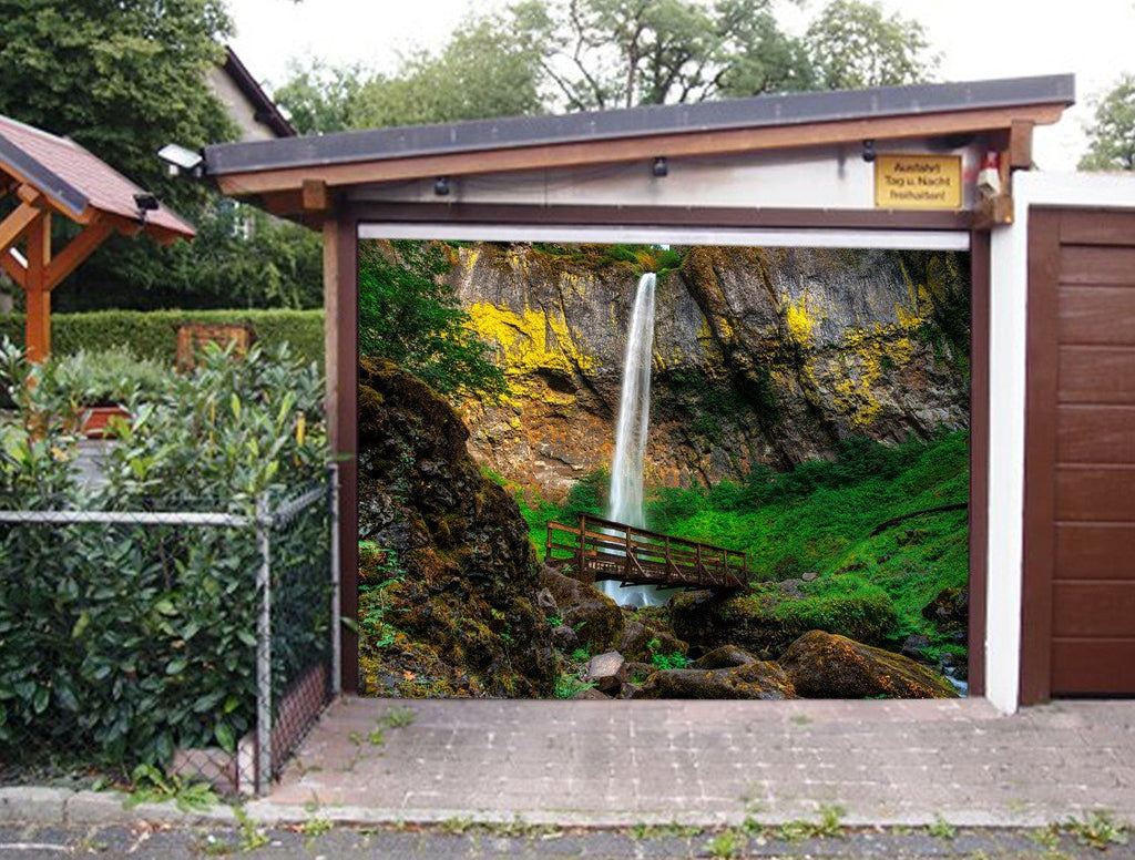 3D Waterfall Wood Bridge 282 Garage Door Mural