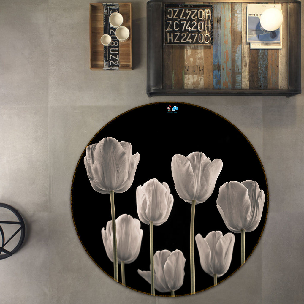 3D White Bud 7309 Assaf Frank Rug Round Non Slip Rug Mat Amy