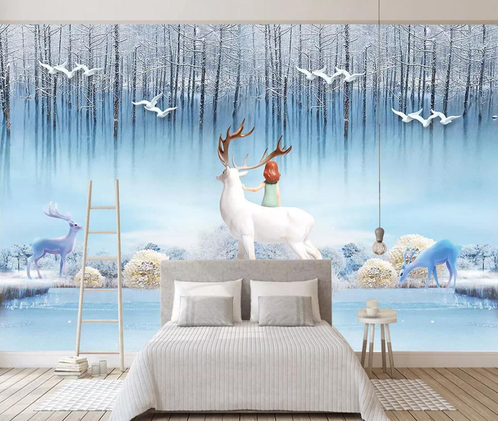 3D White Deer Dove WC586 Wall Murals Zoe