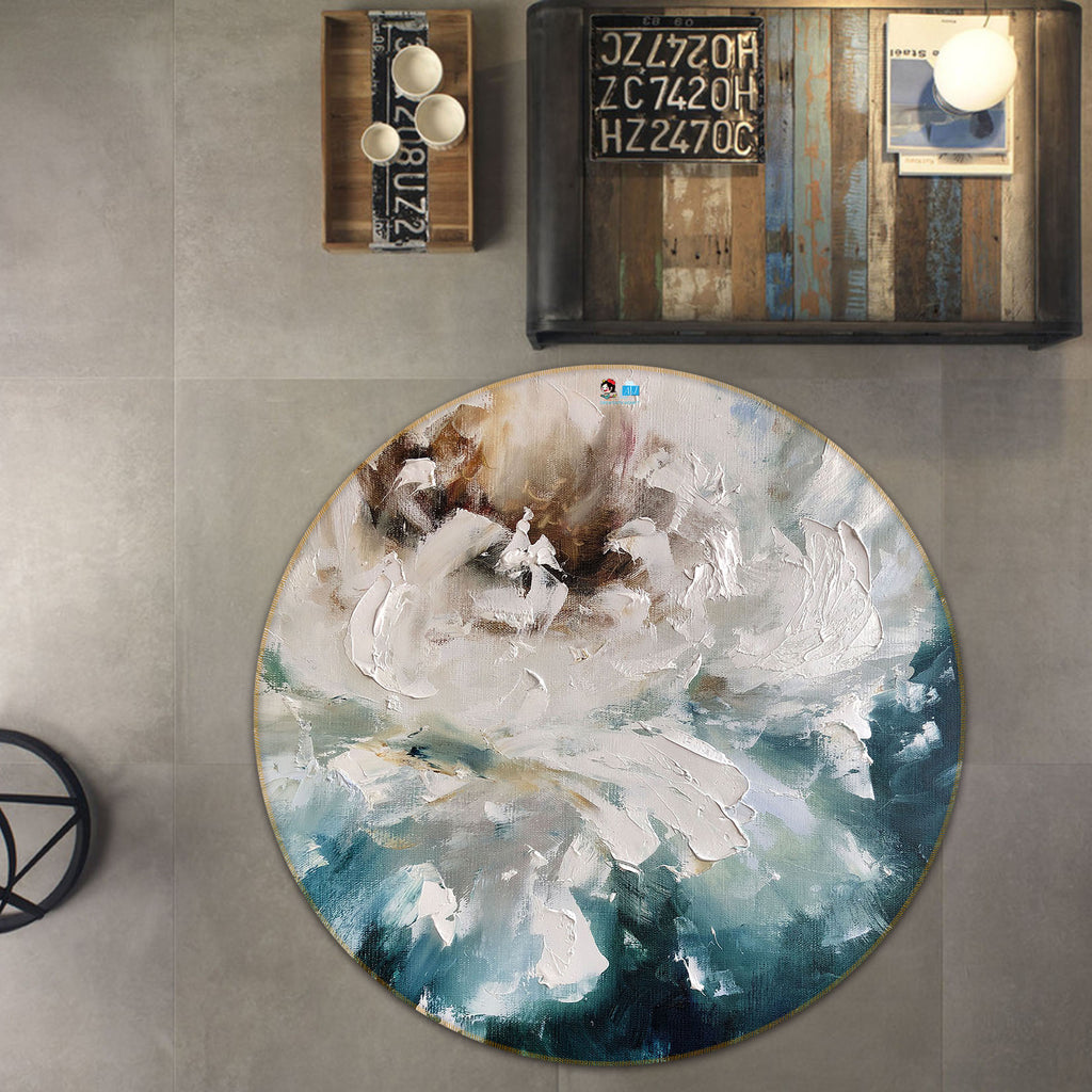 3D White Flower 904 Skromova Marina Rug Round Non Slip Rug Mat