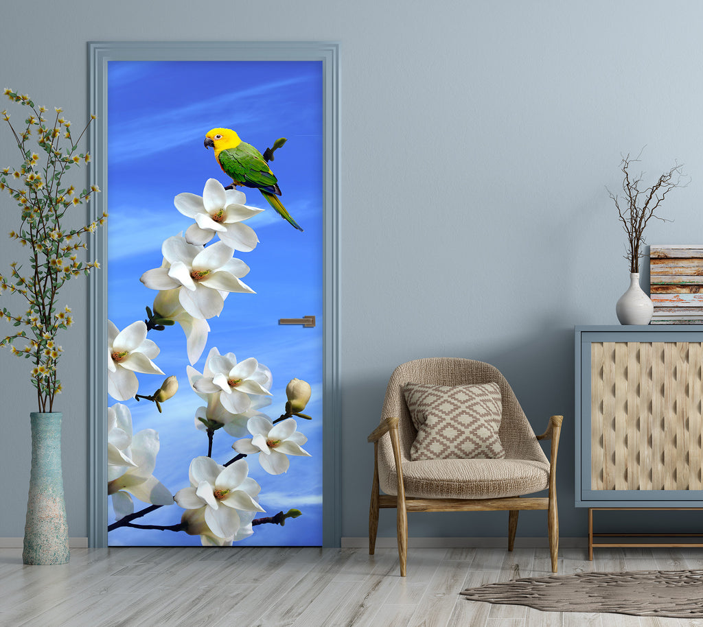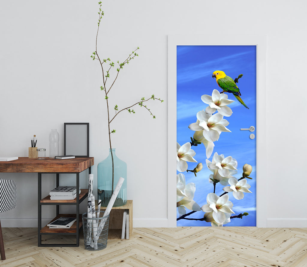 3D White Flower Bird 032 Door Mural Zoe